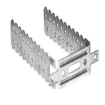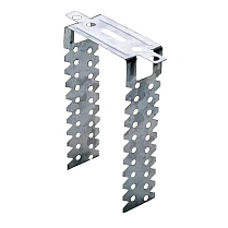 - Универсальная скоба. Используется для фиксации навесного потолка из гипсокартона к перекрытиям, а также для фиксации профилей к стенам.